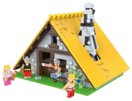 Das Set "Asterixhaus" wird zu einem Preis von etwa 15 Euro angeboten und besteht aus ingesamt 531 Teilen. Das Haus hat ein abnehmbares Dach, einen Schornstein und ein Kamin. Zudem sind eine Tafel mit Bank und Stühlen und beweglicher Tür enthalten. Als Figuren liegen dem Set Asterix mit Schwert, Obelix mit Wildschweinkeule, Gutemine mit Nudelholz und Automatix mit Hammer bei.