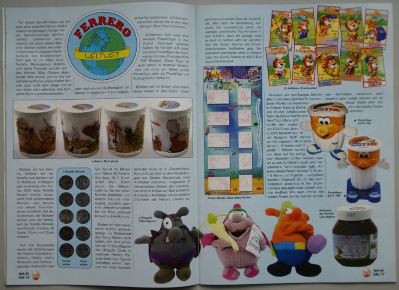 - Nr. 85 (Mai 2002) mit einem doppelseitigen Beitrag zu nutella-Motivgläsern und Deckelinhalten, u.a. einer Asterix-Eurosesterzen- und einer Asterix-Motivglasserie aus BeNeLux.
