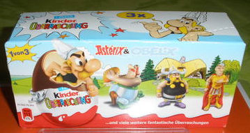 - Gespannt darf man wohl auch sein, ob es wiederum daneben in den Läden eine solche Gewinnspiel-Aktion geben wird, bei der von Ferrero die Asterix-Figuren als Komplettsatz ausgelobt werden, wie es zuletzt stets - aber eben nur in Deutschland! - der Fall war (s. Abbn. 2 & 3).. :?: