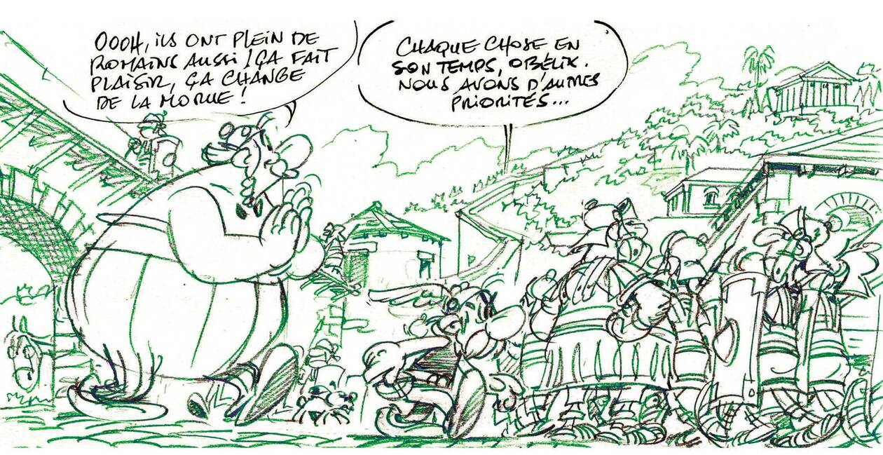 Zu diesen Details teilten Fabcaro und Didier Conrad eine bisher unveröffentlichte Seite, die nicht in den Comic aufgenommen wird.