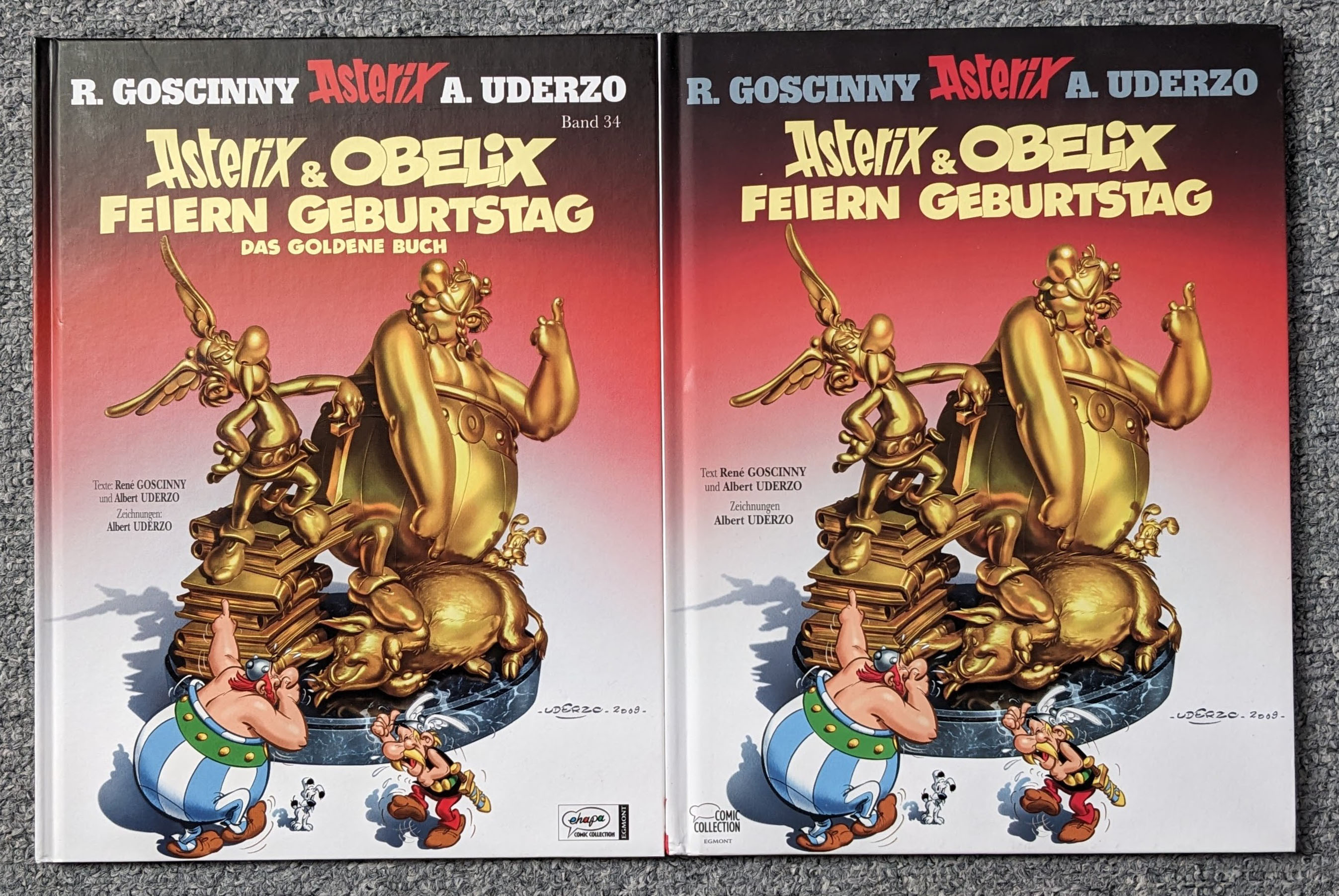Als ich 2016 die Luxus Sammelbox erworben habe, lagen dort die Bände 33 und 34 jedoch noch in einer deutlich älteren Auflage (2005 bzw. 2010) mit dem alten Buchrücken-Design bei. Vermutlich hat Egmont hier dieses "Luxus"-Produkt mit Restbeständen aufgefüllt... Ich musste daher beide Bände später nochmal kaufen für ein einheitliches Bild und besitze sie nun doppelt.