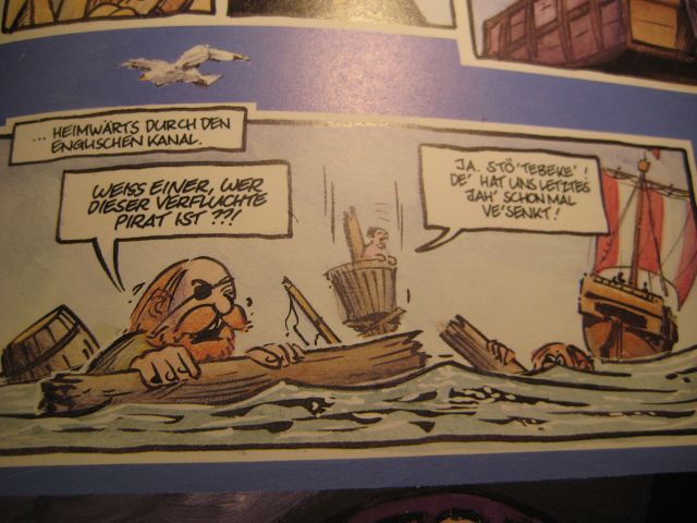 ich habe jetzt auch noch eine nette Anspielung im Comic "Störtebeker" von Harm Bengen (Lappan Verlag, 1993) entdeckt, da ich aktuell keinen Scanner habe konnte ich leider nur ein Foto davon machen, ist nicht so toll gelungen: viele Grüße
