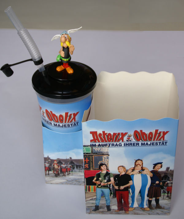 geben tut es Popcorn und Getränke in Asterix-Verpackung jedenfalls auch in deutschen Kinos. Hersteller dieser Lizenzprodukte ist die Firma PCO Group GmbH. Es gibt im Einzelnen: