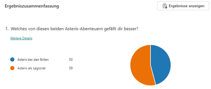 Eine Testfrage zum Asterix-Abenteuer-Turnier. Die ursprünglich vorgesehene technische Lösung ist nicht praktikabel - eine Alternative muss her. Bitte testet diese Alternative und entscheidet euch bis 17.05. um 8 Uhr zwischen zwei hochklassigen Asterix-Geschichten.
