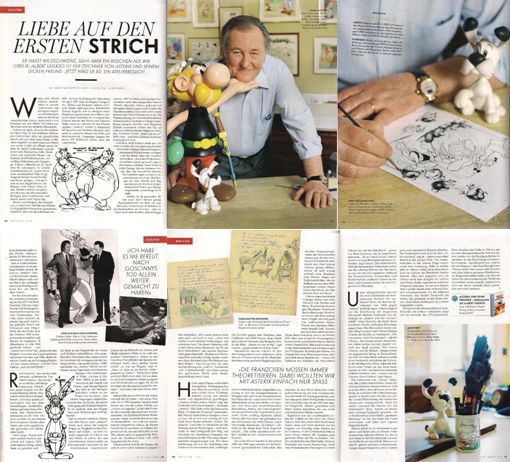 In der deutschsprachigen Ausgabe Nr. 17/07 vom 19. April 2007 des Lifestyle-Wochenmagazins "Vanity Fair", das im internationalen Condé Nast Verlag erschien, wurde in einem sechsseitigen, reichlich bebilderten Kultur-Beitrag von Andreas Rosenfelder über den Asterix-Schöpfer Albert Uderzo anlässlich seines 80. Geburtstags unter dem Titel "Liebe auf den ersten Strich" in Form eines Atelierbesuchs ausführlich berichtet.