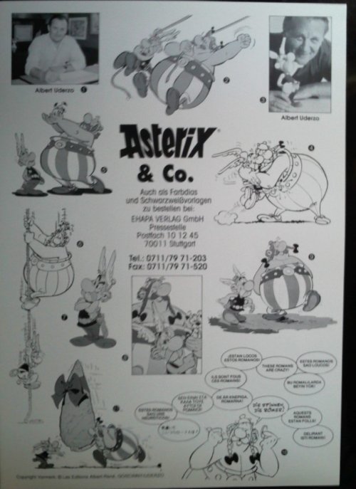 Pressemappe gegeben. Eine erste ohne den Publikumsprospekt (der wohl "Rund um die Welt mit Asterix" sein dürfte) und wahrscheinlich auch ohne die anderen Werbematerialien, die in meiner Mappe so liegen. Diese wurde an Presseleute verschickt. Und dann eben die zweite Auflage, die ich habe, in der etwas mehr drin ist (aber dafür nicht mehr das originale Anschreiben), die sich - erst nach Erscheinen des Bandes - an Händler richtet.