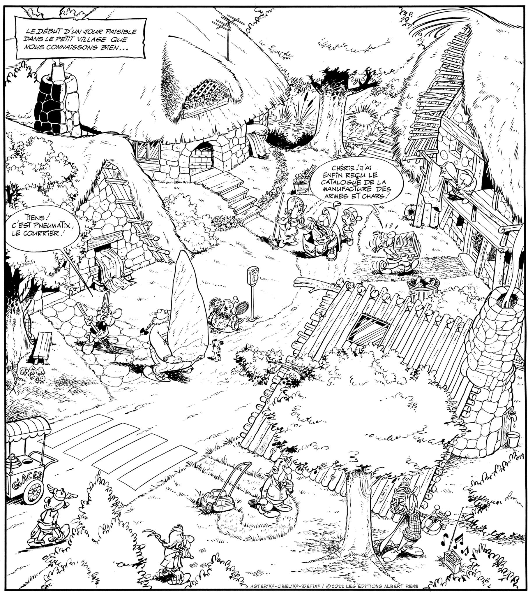 Interessant finde ich: Das Suchbild hat einen viel größeren Bildausschnitt als die originale Zeichnung! Ich hatte mich gewundert, dass mir der Troubadix, der sich zum Singen hinter einem Baum versteckt, nie aufgefallen war.