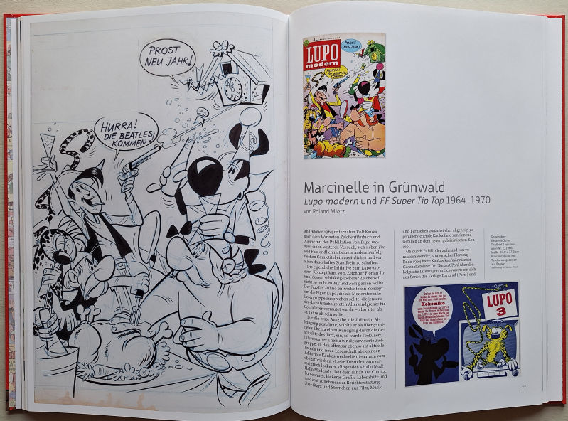Ein ausführliches Kapitel des Buches trägt den Titel "Marcinelle in Grünwald: Lupo modern und FF Super Tip Top 1965-1970". Dieses 25 Seiten lange Kapitel von Roland Mietz behandelt jene Zeit des Kauka-Verlages, in welche die erste - freilich umstrittene - deutsche Asterix-Veröffentlichung als "Siggi und Babarras" fällt. Die Hintergründe und der Verlauf dieser Publikation kommen zur Sprache und werden begleitet durch Abbildungen (auch) der Lupo modern-Cover, die Asterix-Motive zieren.