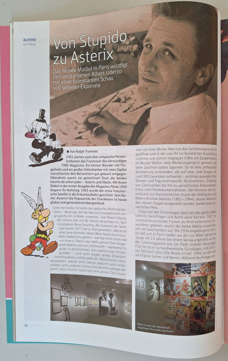 in der aktuellen Ausgabe des Comicfachmagazins Alfonz - Der Comicreporter, Nr. 2/2025 für April bis Juni 2025, ist ein drei Seiten langer Artikel von Ralph Trommer des Titels: "Die Gallier erobern Berlin" abgedruckt. Darin wird über die Ausstellung "Uderzo - Von Asterix bis Zaubertrank" im Museum für Kommunikation Berlin berichtet.