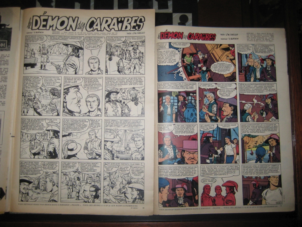 Gregor, könntest Du noch mal ein Vergleichsfoto der beiden entsprechenden Seiten von 'Démon des Caraïbes' posten? Also aus Pilote 65 und 66 nebeneinander, so wie Du's bei Asterix getan hast, bitte.