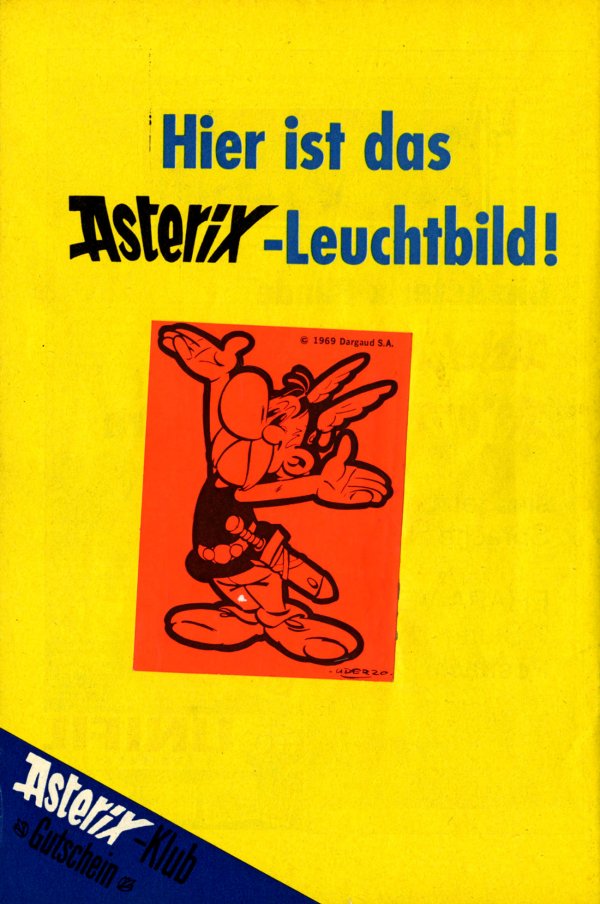 Findefix hat geschrieben:Vielleicht hast Du ja aber von den anderen 5 der 7 erwähnten Heft-Beilagen (also außer dem bereits abgebildeten ersten Asterix-Leuchtbild) noch welche auch in Deiner Reihe mit dabei, - wäre bestimmt sehr hilfreich! ;-)