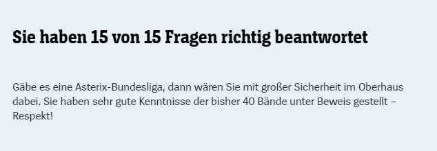 idemix hat geschrieben: 30. Oktober 2023 14:18 Der Spiegel hat anlässlich des neuen Albums mal wieder einen Asterix-Quiz online gestellt. Sogar mit einer Frage aus dem neuen Band: