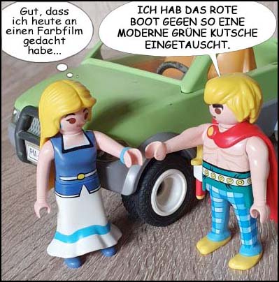 Sehr schön. Überhaupt könnte man mal alternative Asterix-Welten entstehen lassen. So nach dem Motto, wie wäre die Geschichte gelaufen, wenn eine Initialszene nicht so stattgefunden hätte, wie sie im Original gezeichnet wurde. Könnte man dann auch mit Playmobilfiguren nachstellen. ;-)