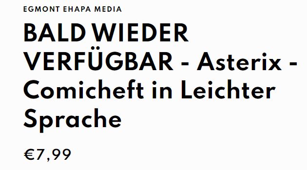 Erik hat geschrieben: 11. August 2023 13:54...Sie ist nicht sinnentstellend und wenn sie - laut Vorwort ja von 4 lernschwachen Personen geprüft - für Personen mit sprachlichen Schwierigkeiten tatsächlich besser verständlich ist, ist damit durchaus etwas gewonnen. Man könnte durchaus erwägen, mehr Asterix-Bände auf diese Weise für die entsprechende Zielgruppe umzusetzen, so dass sie Freude an den Asterix-Comics gewinnen kann.